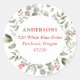 Élégantes étiquettes d'adresse de retour de Noël portant votre nom de famille et adresse entourée de baies sèches d'aquarelle rouge, de baies de neige, de feuillage vert luxuriant et de feuilles d'eucalyptus.