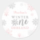 Sticker Rond Winter Onederland Silver Pink Parties scintillant