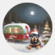 Sticker Rond Winter Rottweiler Caravan Christmas Adventure