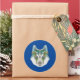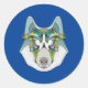 Illustration comme graphique du visage d'un loup / husky avec des embellissements verts & bleus | couleur arrière - plan personnalisable