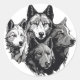 Sticker Rond Wolf Pack Graphisme tribal Loups noirs et blancs