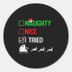 Sticker Rond Womens Funny Nice Naughty I Tried Ugly Christmas S