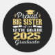 Sticker Rond Womens Proud Big Sister Of 2025 12th Grade Graduat