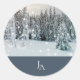 Winter Wonderland Woodland Snow Script Mariage Classic Round Sticker - Pour le couple attiré par la nature et la sérénité boisée, ce design hivernal rustique mêle script classique à une atmosphère de rêve Winter Wonderland. Pins, arbres de Noël et flocons de neige glacés créent un cadre pittoresque et enchanteur. C’est un conte de fées qui a donné vie à votre mariage d’hiver.