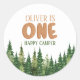 Sticker Rond Woodland Green Rustic Happy Camper First Birthday