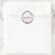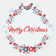 Cet autocollant rond classique présente un design festif de couronnes parfaites pour ajouter une touche de joie de vacances à tout article. Au centre, les mots "Joyeux Noël" sont écrits en caractères gras et cursifs dans une teinte rouge joyeuse, saisissant l'essence de la joie et de la chaleur de la saison. Entourant l'accueil, un ensemble décoratif de flore hivernale, comprenant des baies rouges, des feuilles vert foncé et de charmantes fleurs bleues, crée un motif traditionnel de couronne. Deux oiseaux stylisés, détaillés de motifs d'inspiration folk, perchent gracieusement au-dessus de la couronne, ajoutant un sentiment de vie et de mouvement au design. L'arrière - plan est parsemé de délicats flocons de neige dans deux nuances de bleu, créant un contraste subtil par rapport à la base blanche de l'autocollant. Ce design autocollant combine le symbolisme de Noël classique avec une touche d'élégance rustique, idéal pour personnaliser l'emballage cadeau, les cartes de voeux, ou les faveurs de fête de vacances.