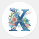 Sticker Rond X, monogramme bleu avec fleurs, généré par l'IA,