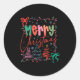 Sticker Rond Xmas Buffalo Plaid Red White Green Merry Christmas