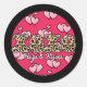 XOXO Hugs & Kisses Coeurs roses Sticker rond classique de la Saint-Valentin