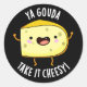Sticker Rond Ya Gouda Prenez-Le Cheesy Funny Cheese Pun Dark BG