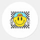 Sticker Rond Yellow Smile Face Cute Checkered Peace Smiling Hap
