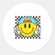 Sticker Rond Yellow Smile Face Cute Checkered Peace Smiling Hap