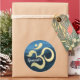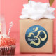 Studio De Fitness Yoga / Méditation Instructeur / Personal Trainer / Life Coach / Healer / Reiki Master / Massage Therapy Sticker Modèle - Moderne Faux Gold Foil Om Symbole sur Dark Blue Wave Motif Arrière - plan.