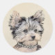 Sticker Rond Yorkshire Terrier Puppy Peinture Chien original