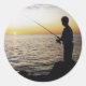 Sticker Rond Young Man Fishing au coucher du soleil d'Anna Mari