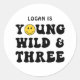 Sticker Rond Young Wild et Three Boy 3e fête d'anniversaire
