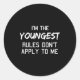 Sticker Rond Youngest Child Shirt Rules Don't Apply To Me Sibli