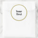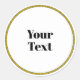 White circle ready to personalize with black text. Gold circle frame.