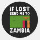 Sticker Rond Zambie Drapeau Si Perdu Envoyez-Moi En Zambie