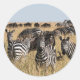 Sticker rond Zebra Classic de Grant. Un troupeau de Zèbres de Grant sur la savane. Triangle Mara - Réserve nationale Massai Mara, Kenya, Afrique. Photo de Javi Lorbada.
