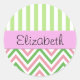 Sticker Rond Zigzag, Chevron, Grilles, Rose, Vert, Votre Nom