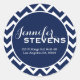 Sticker Rond Zigzag géométrique bleu et blanc monogramme Chevro