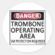 Danger, Zone Opérationnelle Trombone ! Protection de l'oreille requise ! Cela leur donne un avertissement équitable ! Voir tous nos designs musicaux sur tasses, tasses, tee - shirt, sweatshirt, casquette, et autres cadeaux et vêtements.