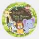 Cute, jungle, zoo animal thème design baby shower sur camo vert vif, motif camouflage. On y trouve un joyeux lion, un éléphant, un zèbre, une girafe et un singe. Baby shower neutre ou conception d'aspersion pour bébé garçon ou fille que vous pouvez personnaliser. Visitez notre magasin, Favors et Decor, pour beaucoup d'autres cadeaux de fête et décorations pour des fourrures et des décors de sac de bonne qualité. Merci!