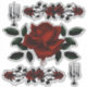 Rose rouge profonde avec des gouttes de rouge accompagnée de deux roses rouges vives et de deux chandeliers noirs. Idéal pour un évènement à thème gothique ou seulement pour les amateurs de ce genre d'art.