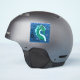 Portrait de profil de dragon bleu, vert et turquoise avec neige tombant tout autour. Rose tribal noir.