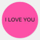 Autocollant rose ronde avec les mots "I LOVE YOU" écrit clairement sur le devant.