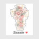 Sticker Roses Fleurs Rose Aquarelle avec Croix Dorée