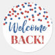 Sticker rouge bleu Confetti Welcome Back Round