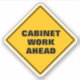 Drôle classique de losange jaune avertissement de route avertit du travail de l'armoire devant dans une épaisse police noir sans serif. Parfait pour le boisé, charpentier, ébéniste.