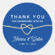 Simple, élégant, minimal, mariage bleu royal merci autocollant pour les faveurs avec coeur de corde or et script de calligraphie moderne.