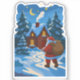 Beautiful custom-cut Christmas sticker with Santa Claus bringing gifts to kids of the house in the forest covered by snow. It is a beautiful idea to give to every guest a memorable sticker, which is durable and has a cut-out form. The participants and volunteers will keep these stickers as souvenirs. Suitable for gift items, household objects, clothing.