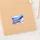 Joli autocollant avec beau coucher de soleil à Santorin Grèce.