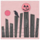 Scène d'Halloween avec clôture, corneille, pleine lune, & citrouille sur un amusant stickers arrière - plan rose.