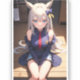 Elégant catgirl dans une tenue croustillante d'académie de marine, cheveux argentés coulant et yeux bleus brillant, capturé dans le style kawaii anime avec audacieux, ombrage élégant.