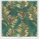 Seamless pattern of gold, jewelry, shiny fern branches and leaves on green, woodland, textured background. Golden fern.