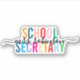 Célébrez votre rôle de secrétaire d'école avec cet autocollant dynamique et personnalisable ! Il est conçu avec une touche colorée et amusante et dispose d'une police de script élégante pour présenter votre nom. Parfait pour ajouter de la personnalité à votre bureau, ordinateur portable ou espace bureau.