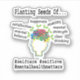 Sticker de sensibilisation à la santé mentale conçu par Nisha Prabhu. Avec le design de l'esprit humain installé avec des graines de pensées positives. Sticker pour la sensibilisation à la santé mentale! Ce design vibrant et attrayant n'est pas seulement un autocollant - c'est un début de conversation. Parfait pour décorer votre ordinateur portable, votre bouteille d'eau ou votre carnet, cet autocollant envoie un puissant message de soutien et de compréhension. Répandre la positivité et promouvoir la sensibilisation à la santé mentale partout où vous allez. Montrez votre solidarité avec ceux qui font face à des défis de santé mentale et aidez à briser les barrières. Prenez vos mains sur cet autocollant impactable et faites une déclaration pour une cause qui compte.