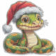 Un serpent dessiné artistiquement avec un corps détaillé, portant un chapeau de père Noël, rayonnant une combinaison captivante de charme, de fantaisie et d'art illustratif magique.