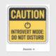 Cet autocollant de style prudence, audacieux et minimaliste, dit "MODE INTROVERT : NE PAS DÉRANGER", parfaitement encadré dans un format noir et jaune attrayant. L'icône de l'interrupteur d'alimentation en position arrêt indique tout : le temps calme est sacré. Idéal pour les ordinateurs portables, les carnets, les portes, ou n'importe où vous voulez déclarer en silence votre besoin de paix. Inspiré par la signalisation de sécurité officielle, il est un design humoristique mais réaliste pour ceux qui chérissent la solitude et le temps de recharge.