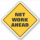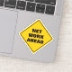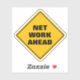 Drôle classique losange de prudence de route avertit de travail net devant dans une police noire sans serif épaisse, qui est un signal d'avertissement pour le panneau de travail routier qui sera à venir prochaine.