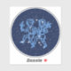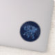Sticker avec le symbole de Gemini en bleu argenté doux, recouvert d'étoiles de la constellation, contre un arrière - plan étoilé du bleu profond de minuit au noir