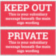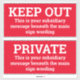 Deux signes d'avertissement. Modifiez le libellé pour afficher votre propre message sur chacun. Très grande taille. 30 cm de large.