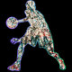 Ce design dynamique présente la silhouette vibrante d'un joueur de basket-ball qui exécute un sommier spectaculaire, avec des couleurs dynamiques et un style d'art moderne. Idéal pour les amateurs de