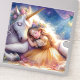 A tender dreamscape unfolds as a sleeping girl rests against a gentle unicorn beneath a twilight sky glowing with soft light and drifting butterflies. Flowing hair, floral crowns, and painterly details create a soothing, storybook mood filled with innocence, comfort, and quiet magic. The palette blends creamy whites, blush pinks, warm golds, and serene twilight blues, wrapped in a whimsical cottagecore fantasy aesthetic that feels nurturing, peaceful, and timeless. AI generated artwork.