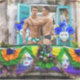 SlipperyJoe's Mardi Gras masques perles décorations speedos vibrants ornés balcon vert jaune violet tissus hommes embrassant l'autre atmosphère festive vieux bâtiment murs patinés volets LGBTQIA gay pride cadeaux nouveaux orléans